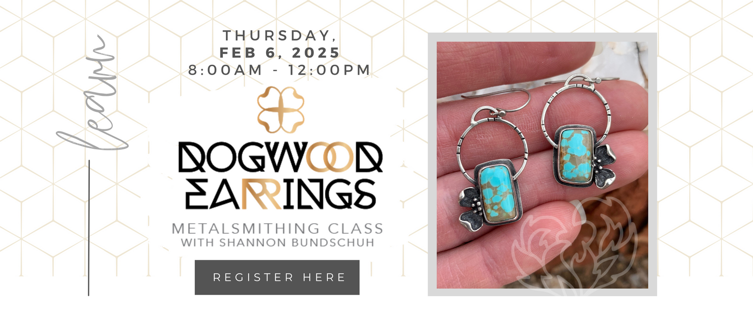 In this class, we will construct a pair of earrings out of a Dogwood casting & a matching pair of cabochons.