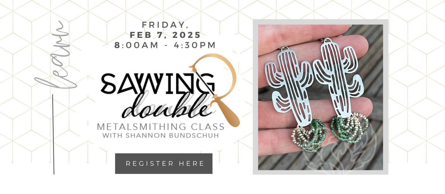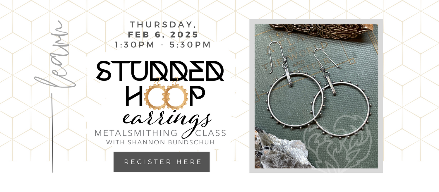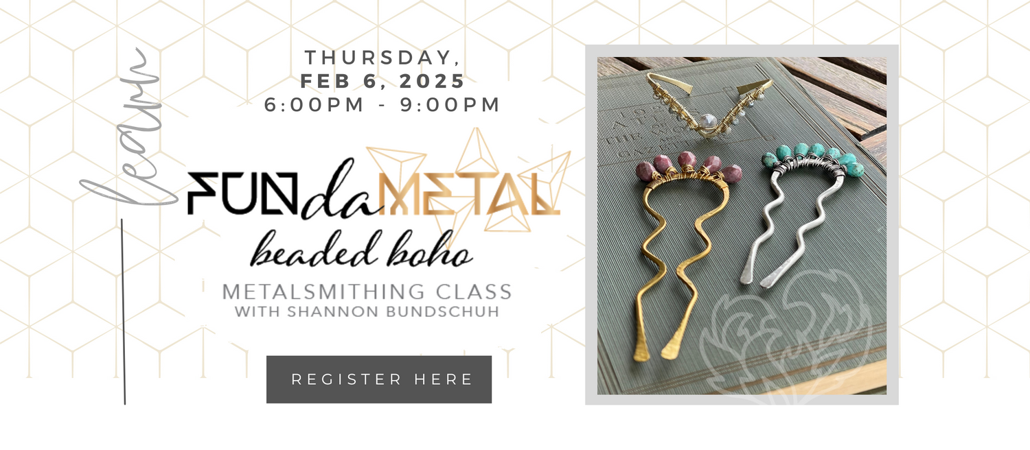 We will cover the FUNdaMETALS such as forming, wire wrapping, texturing and finishing. You will for sure walk out of class with at least one finished piece… most likely more!