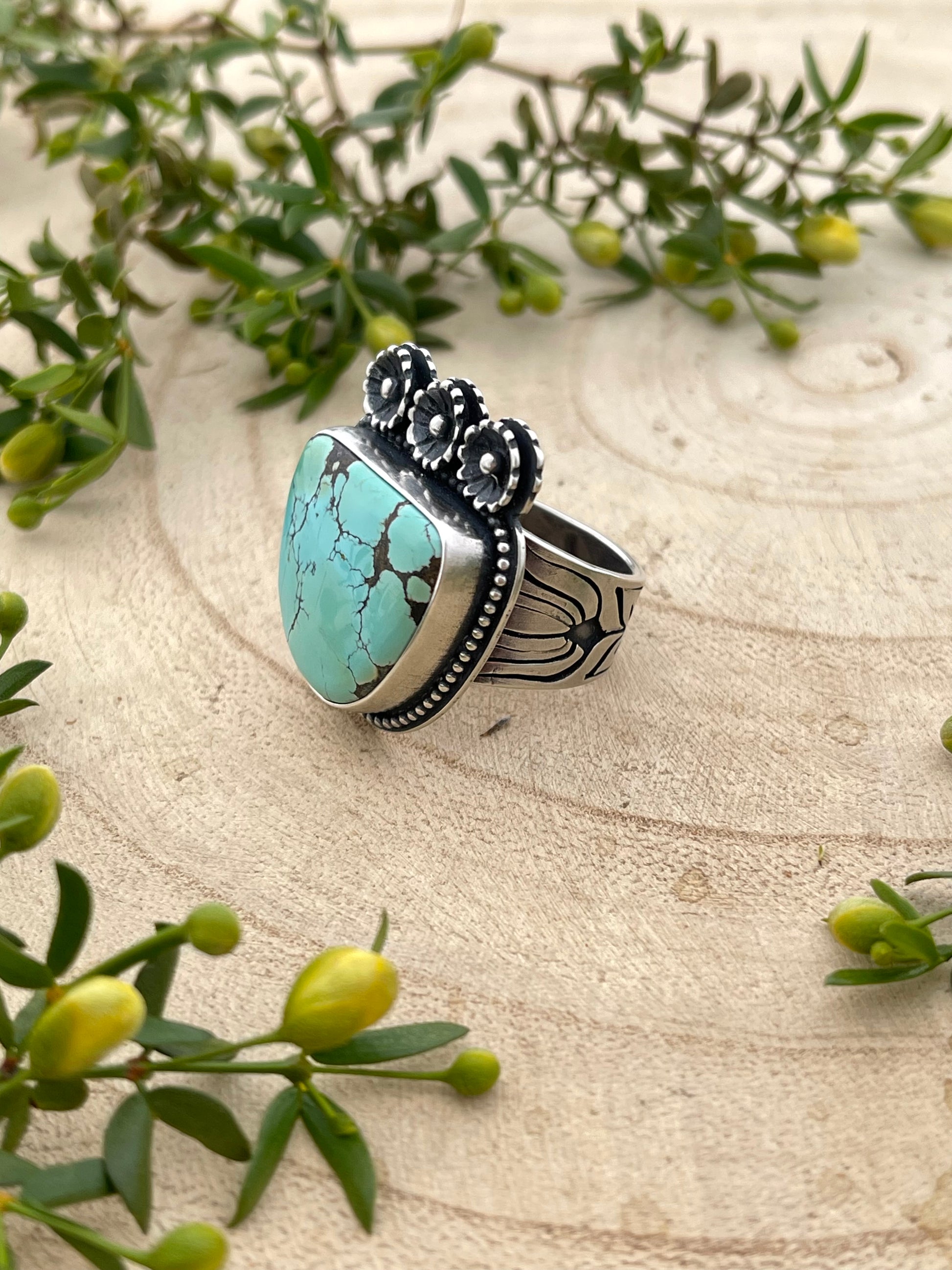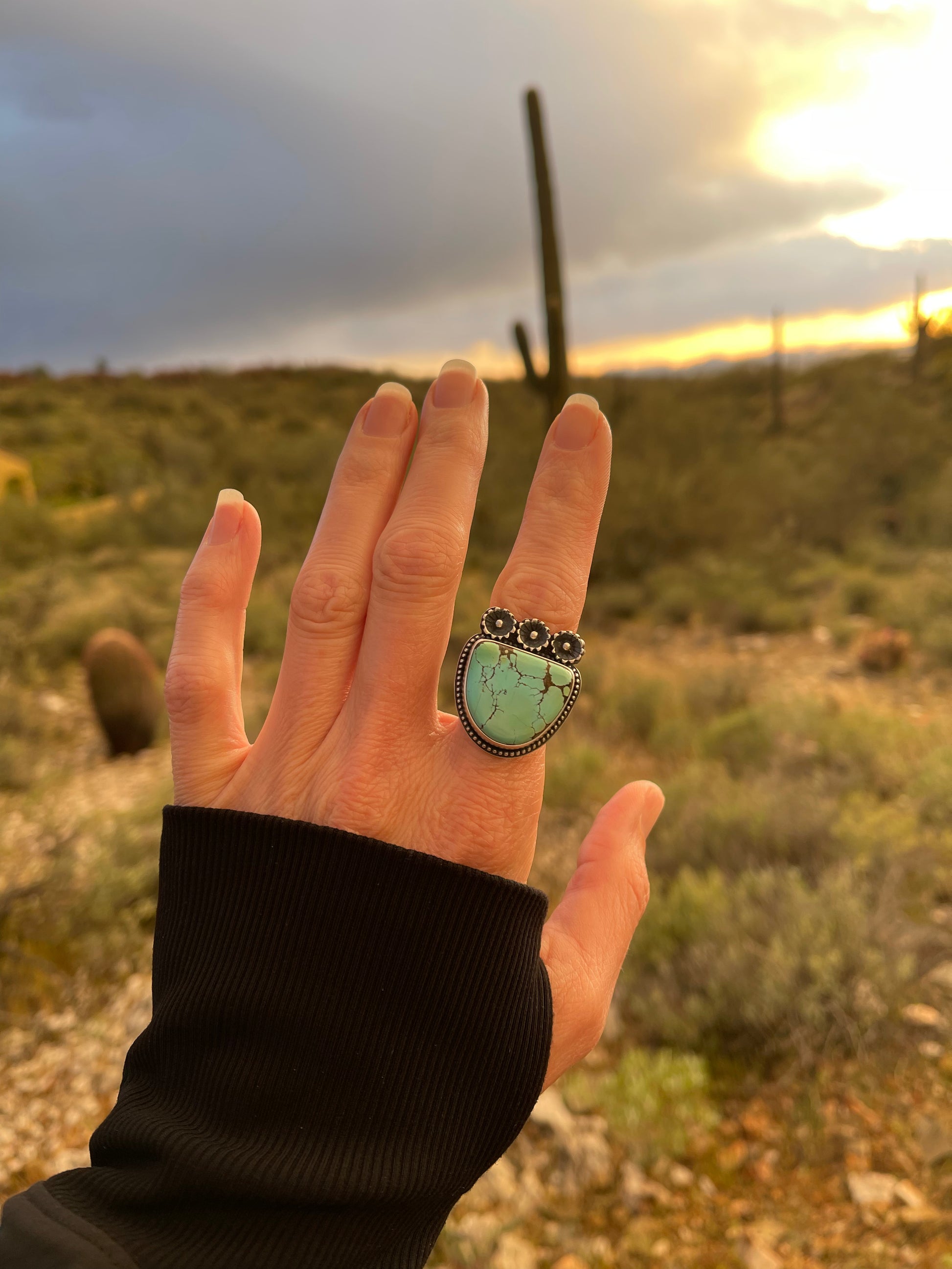 * Please note: This ring measures as a size 8 on a ring mandrel, but fits more like a 7.5/7.75 due to the statement size of this ring and the width of the band.
