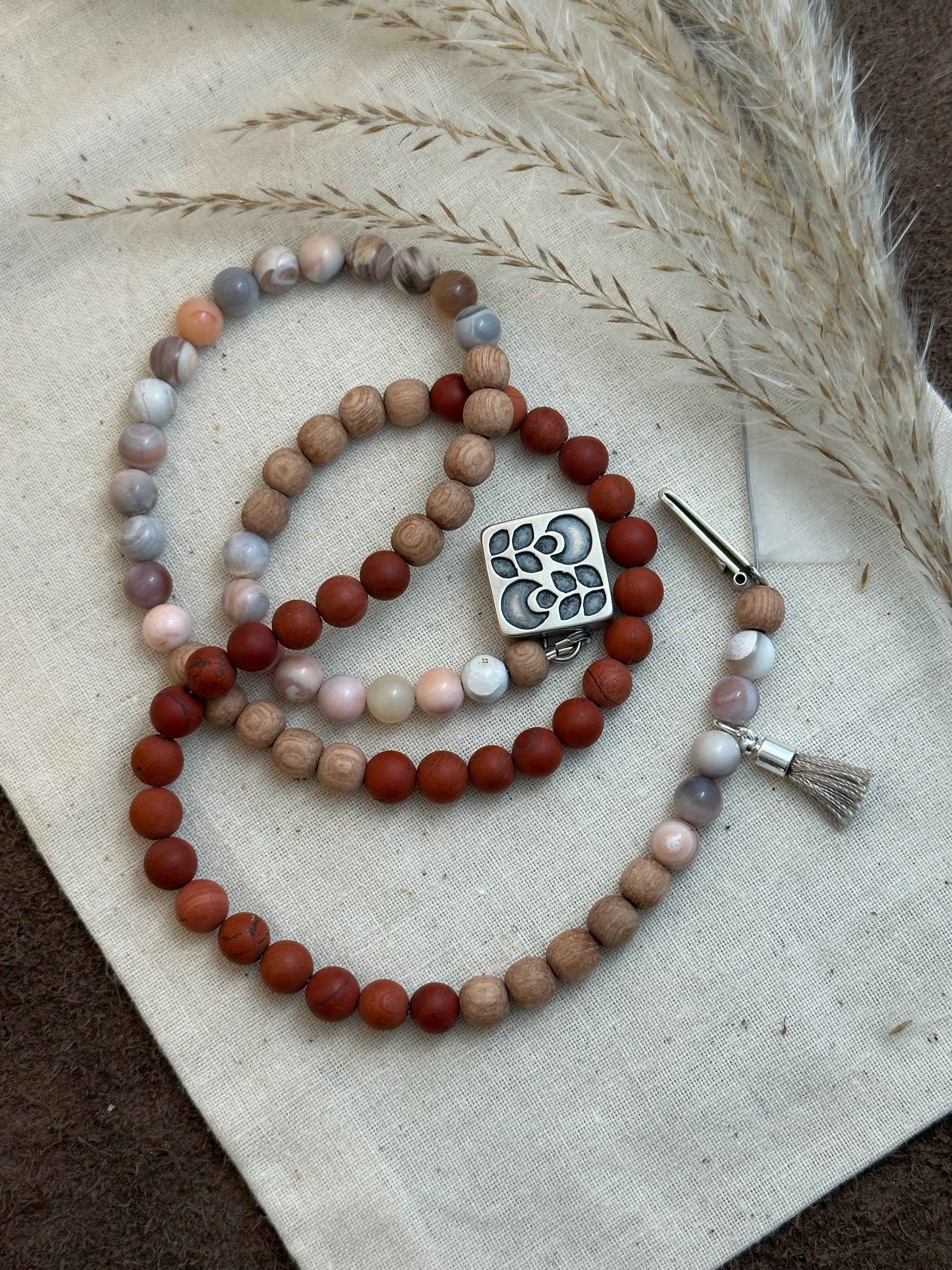 Matte Red Jasper + Pink Botswana Agate + Rosewood